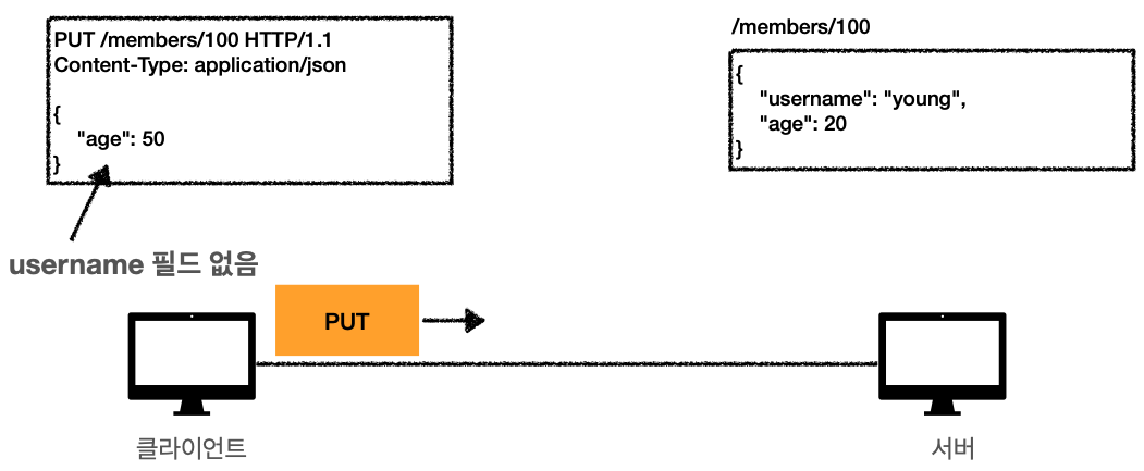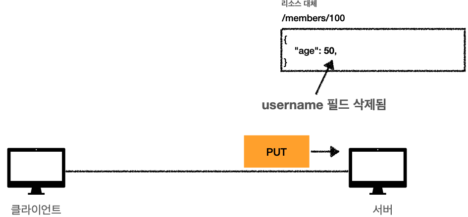 - PUT : 기존 리소스가 있다면 대체하고, 없다면 생성합니다.