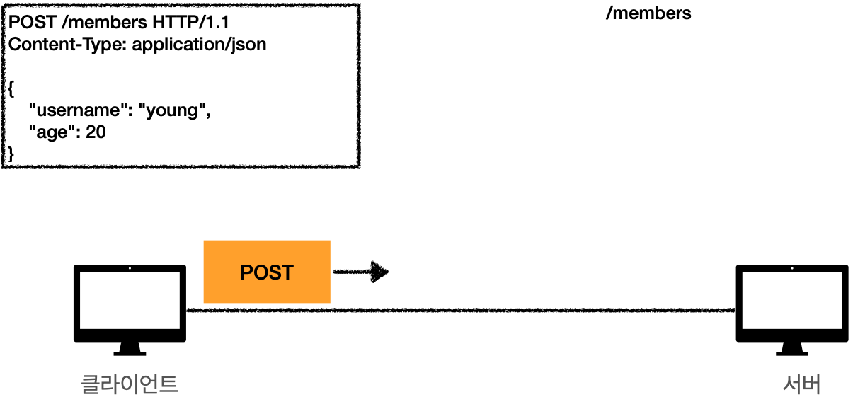 - 데이터를 HTTP 메시지 바디를 통해 서버로 요청 데이터를 전송합니다.