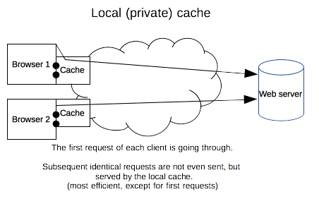 - 로컬 캐시 : 대표적으로 브라우저 캐시를 말합니다. 이미지, 스타일 시트, 스크립트 등의 리소스를 브라우저에 캐싱하여 다음에 같은 리소스를 요청할 때 서버에 다시 요청하지 않고 로컬에서 빠르게 가져올 수 있습니다.