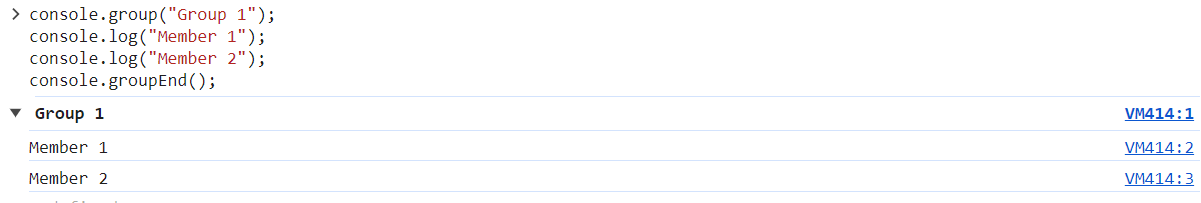 | console.group() / console.groupEnd() | 그룹을 만들어 로그를 그룹화합니다. |