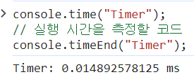 | console.time() / console.timeEnd() | 코드 실행에 소요된 시간을 측정합니다. |