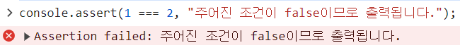 console.assert() : 주어진 조건이 false일 경우 에러를 출력합니다.