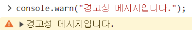 console.warn() : 콘솔에 경고 메시지를 출력합니다.