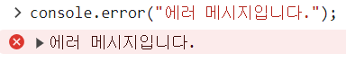 console.error() : 콘솔에 에러 메시지를 출력합니다.
