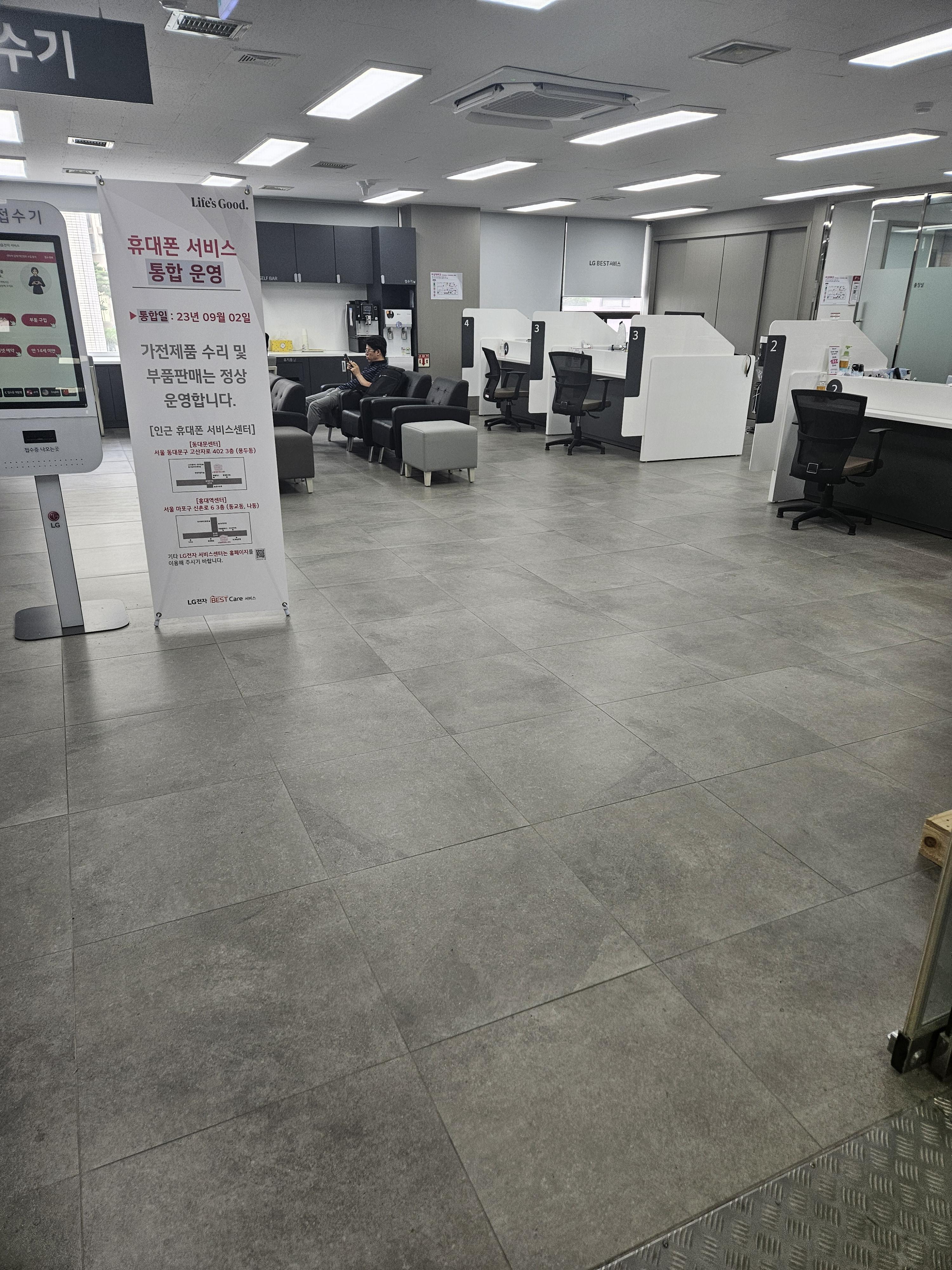 충정로 LG서비스센터 내부입니다. 평일 점심시간이었음에도 사람이 아무도 없어서 수리를 바로 받을 수 있었습니다. 참고로, 점심시간의 경우 영업을 하지 않으니까 이 시간을 피해서 가주셔야 합니다. 저는 이 사실을 몰라서 기다렸습니다.