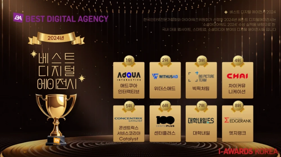 소셜 아이어워즈 2024 기반 - 베스트 디지털 에이전시 순위 알아보기