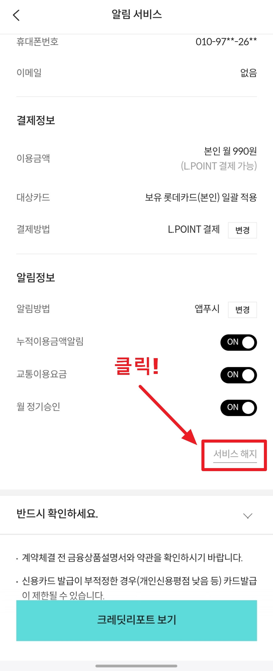 롯데카드 크레딧케어 해지방법