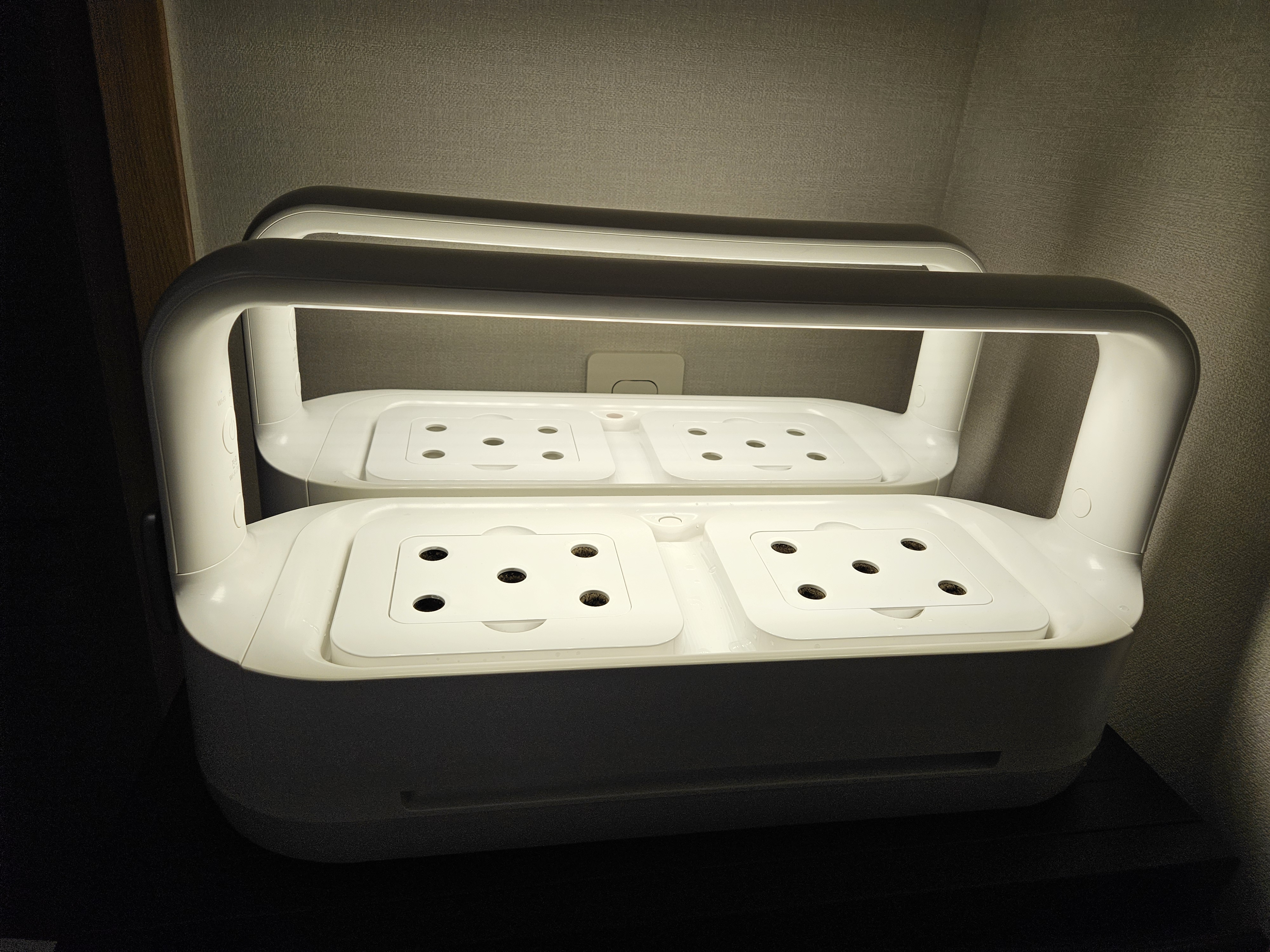 우선 기본적으로 제품이 예뻐서 인테리어적으로 괜찮은 것 같아요. 처음에는 조명이 밝아서 신경쓰였는데 좀 적응되니까 그런대로 괜찮은것 같고요. 안 괜찮으면 암막 박스라도 설치하려고 합니다. 식물을 키우고 싶지만 관리가 어려웠던 분들에게 추천할 만합니다. 앞으로도 꾸준히 사용하면서 성장 과정을 기록해 보도록 하겠습니다.