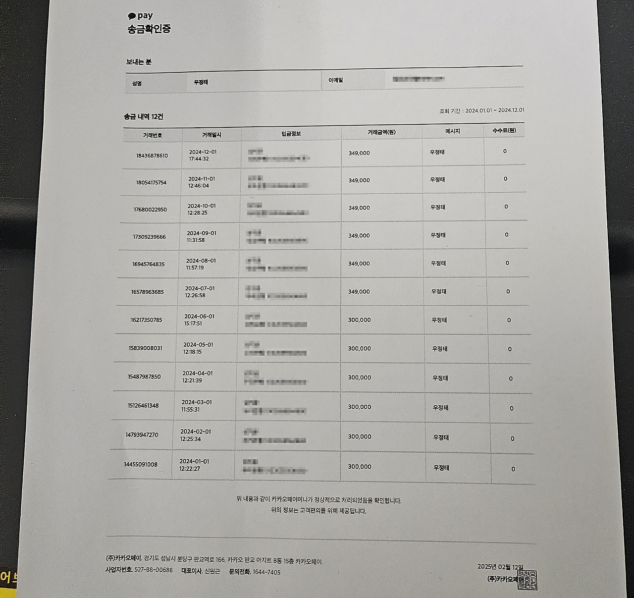 - 카카오페이로 월세를 납부했더라도, 임대차계약서와 일치하는 계좌로 송금되었는지 확인해야 합니다.