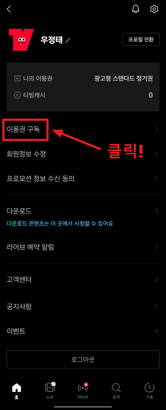 티빙(TVING) 모바일앱에서 구독 해지하는 방법