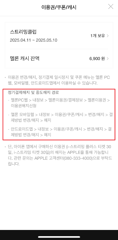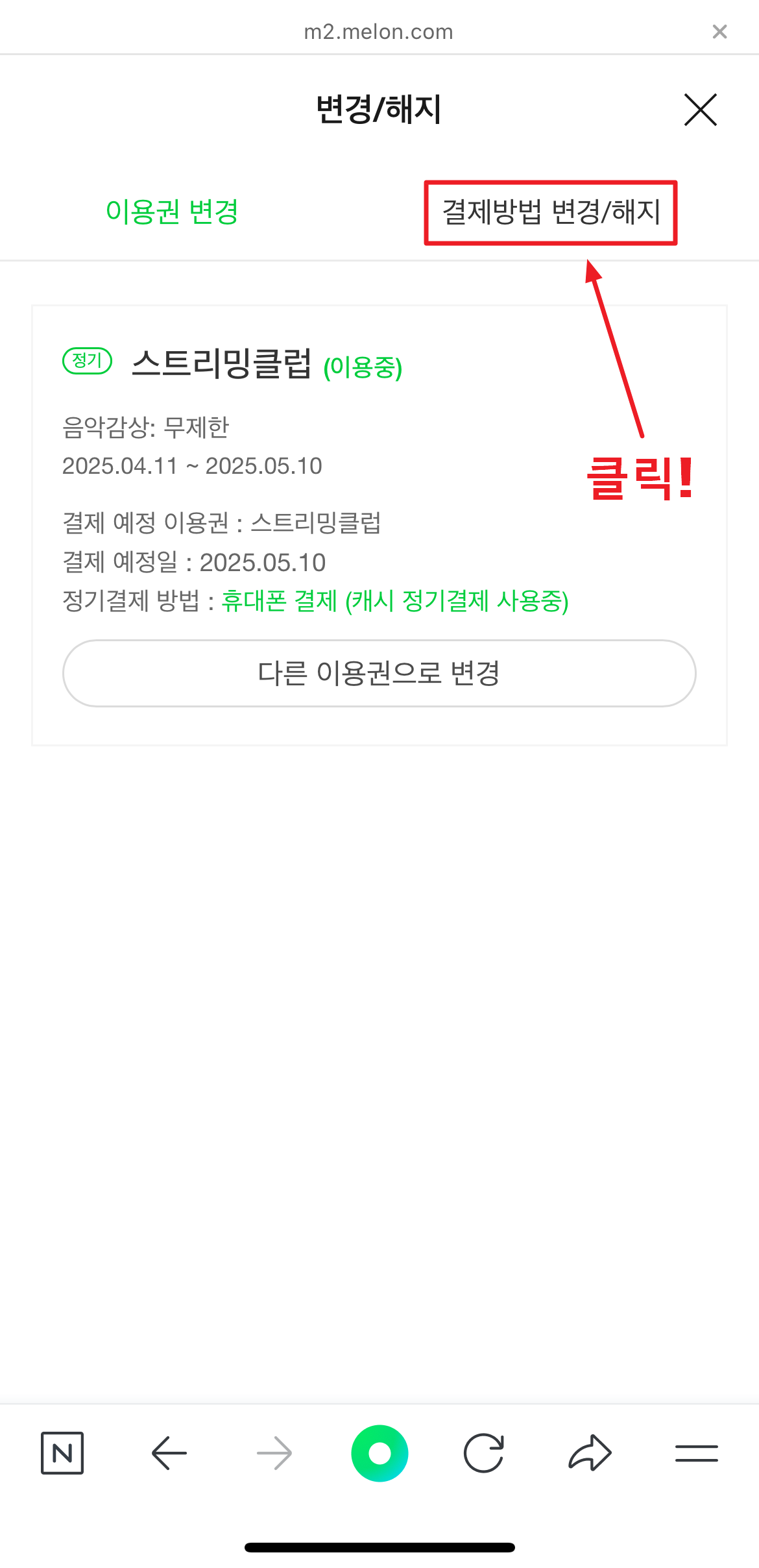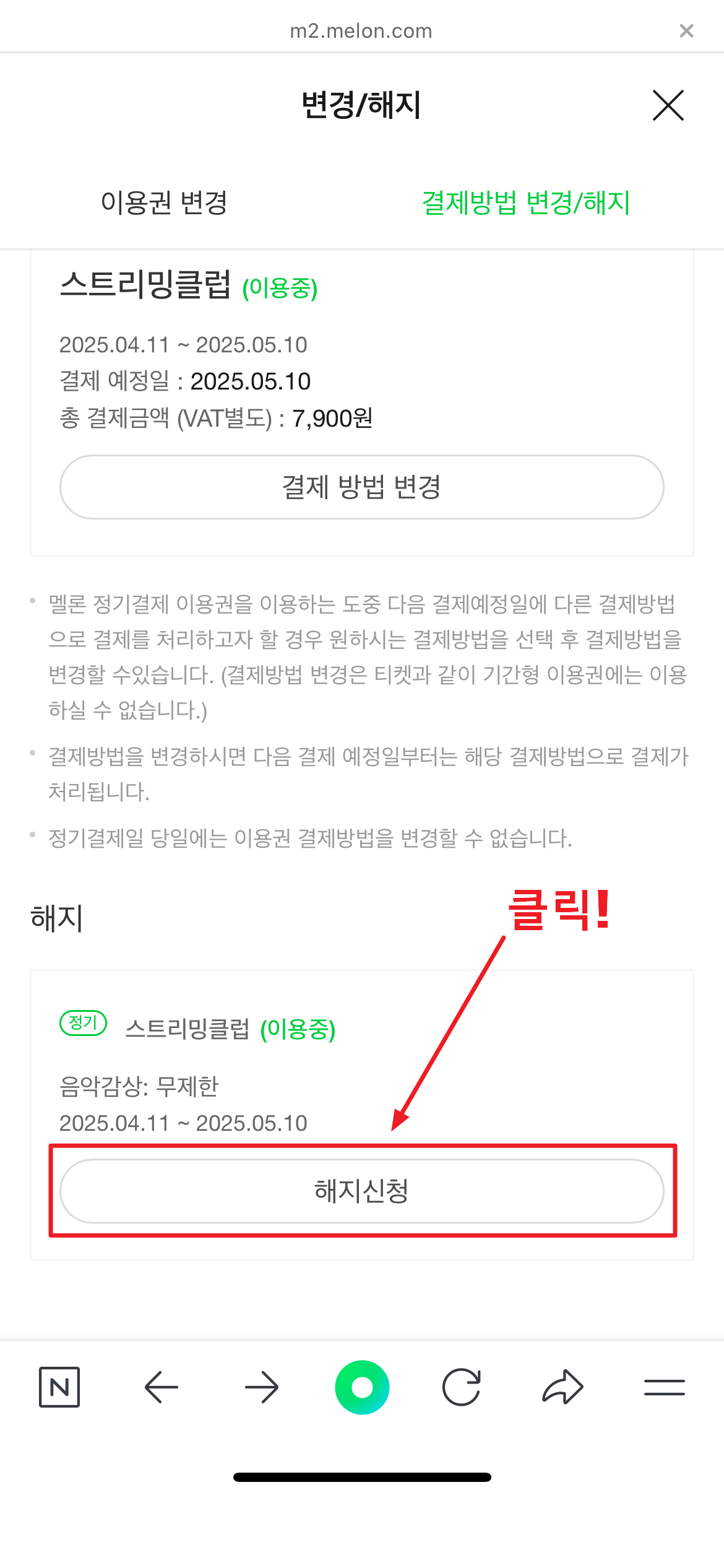 ※ 참고로 아이폰은 멜론앱에서 구독 해지가 안됩니다. 무조건(멜론 웹)으로 접근하셔야 해요.!