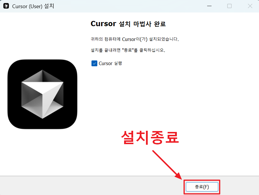 8. 설치를 종료하고 Cursor를 실행해 볼게요.