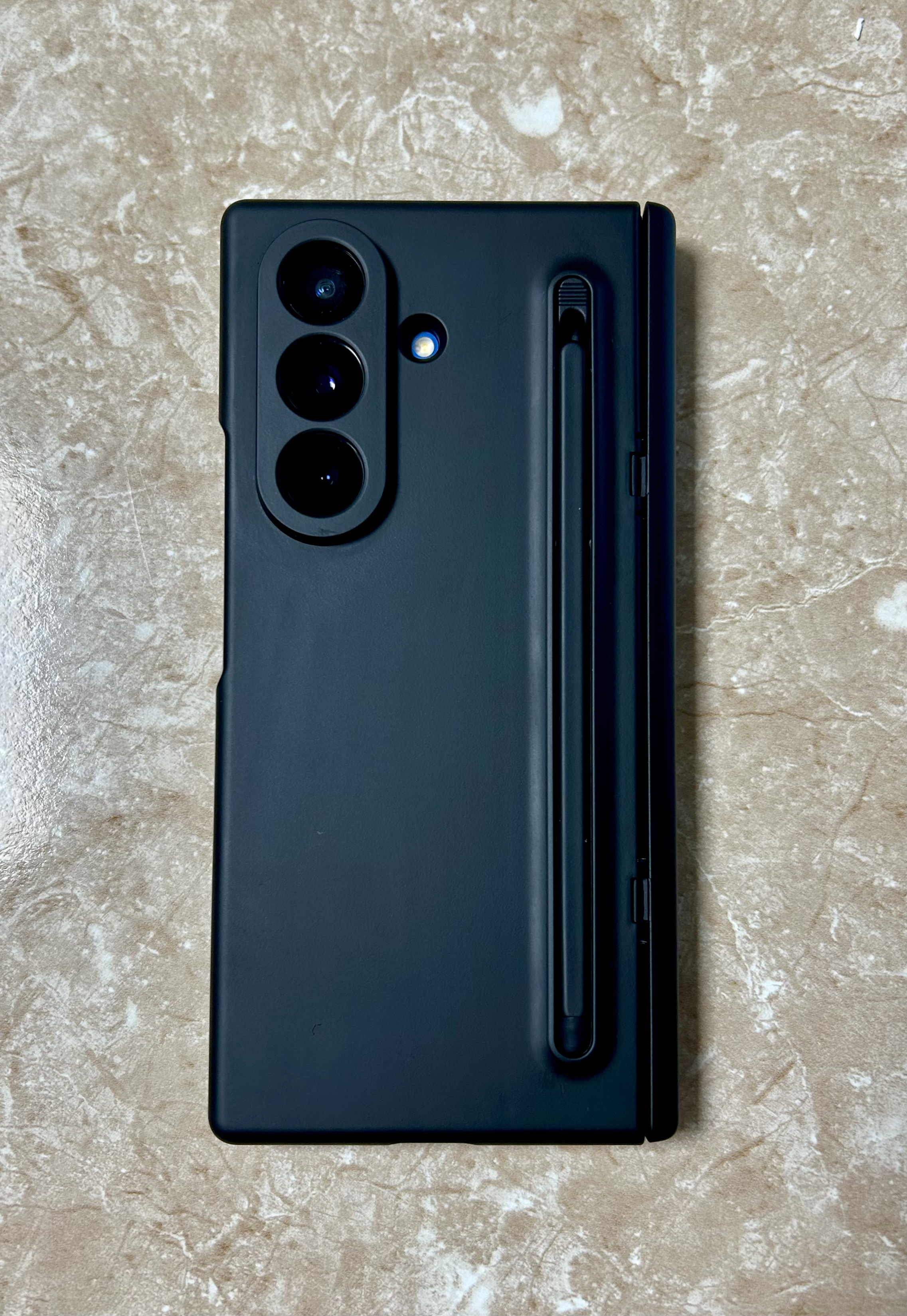 필름을 붙인 다음에는 케이스 선택이 고민이었는데, 저는 멕시드 씬커버 프로 360 힌지보호 S펜 케이스를 선택했습니다. 제가 원했던 기능을 다 충족하고 있는 제품이에요. 전면, 후면은 물론 힌지까지 완전히 감싸줘서 낙하 시에도 안심할 수 있고요, 특히 힌지 보호 구조로 폴드폰 특유의 약한 부분인 힌지를 튼튼하게 커버해 줍니다. 그리고 필기를 할 때 펜이 없어서 아쉬웠던 경우가 많았는데 핸드폰 뒤쪽에 펜을 수납할 수 있는 공간이 있어서 좋았습니다.