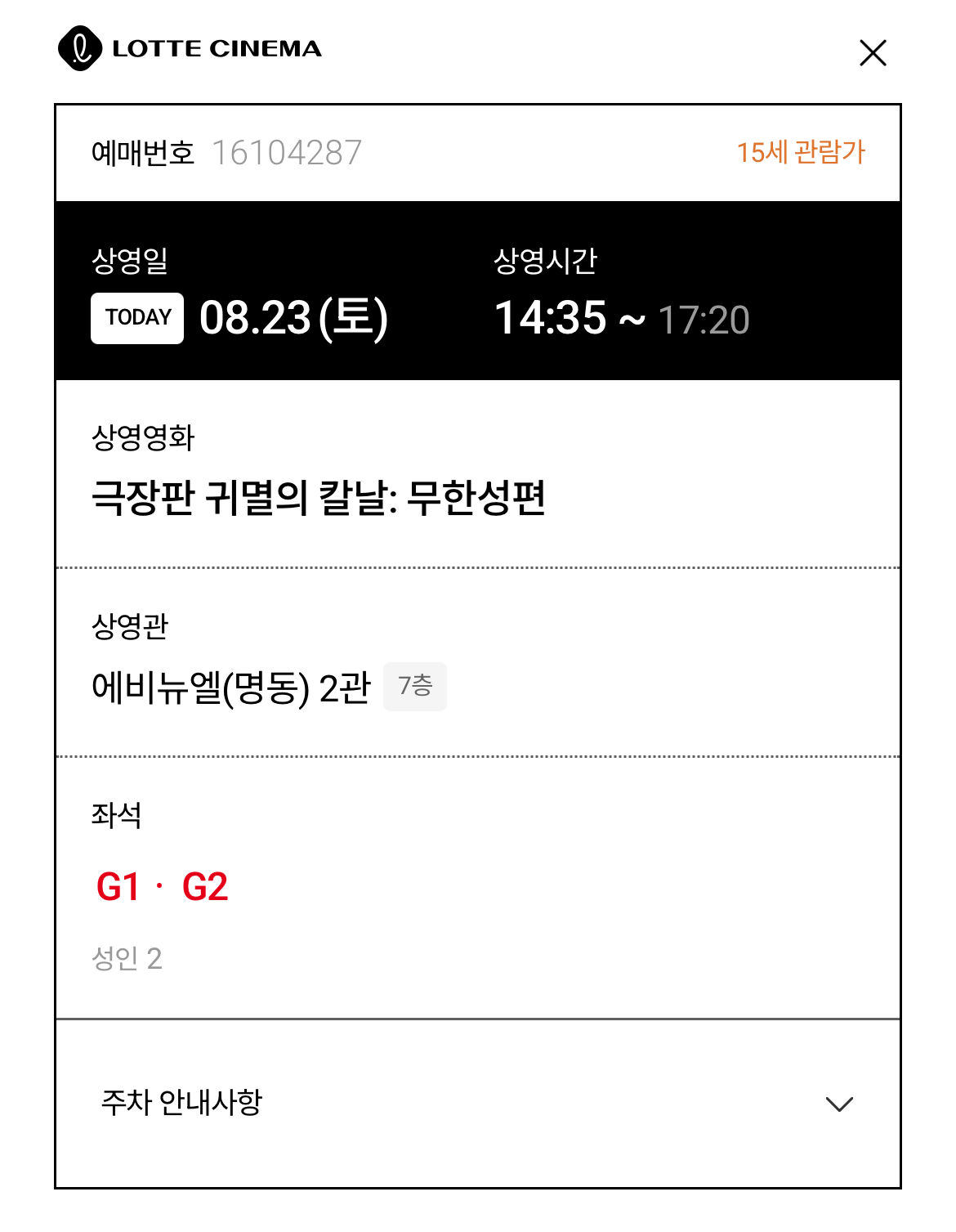 4. 헌혈기념품 영화관람권을 사용하여 영화티켓 발권이 완료된 것을 보실 수 있습니다.