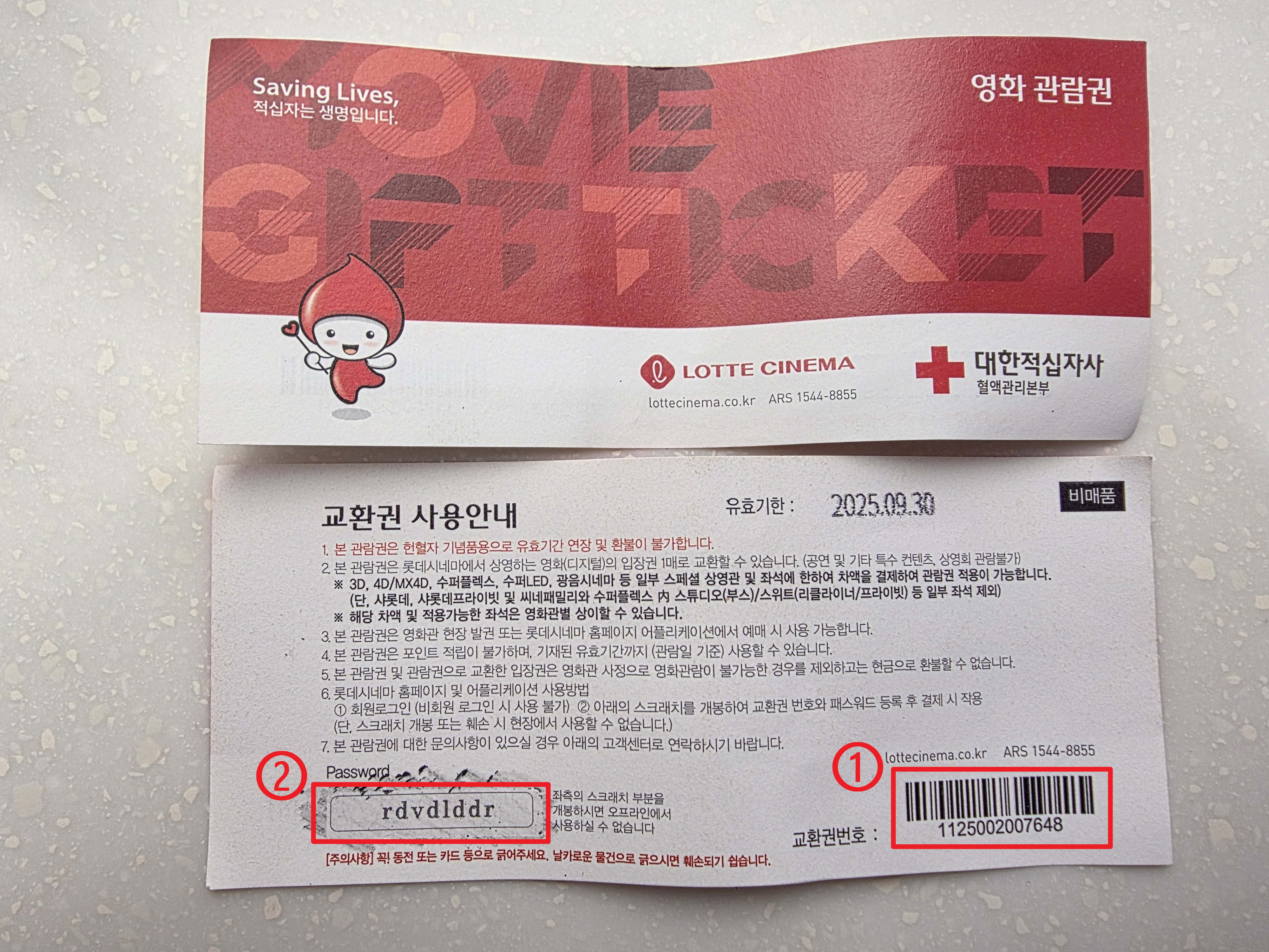 헌혈기념품 롯데시네마 영화관람권 - 온라인 예매 방법