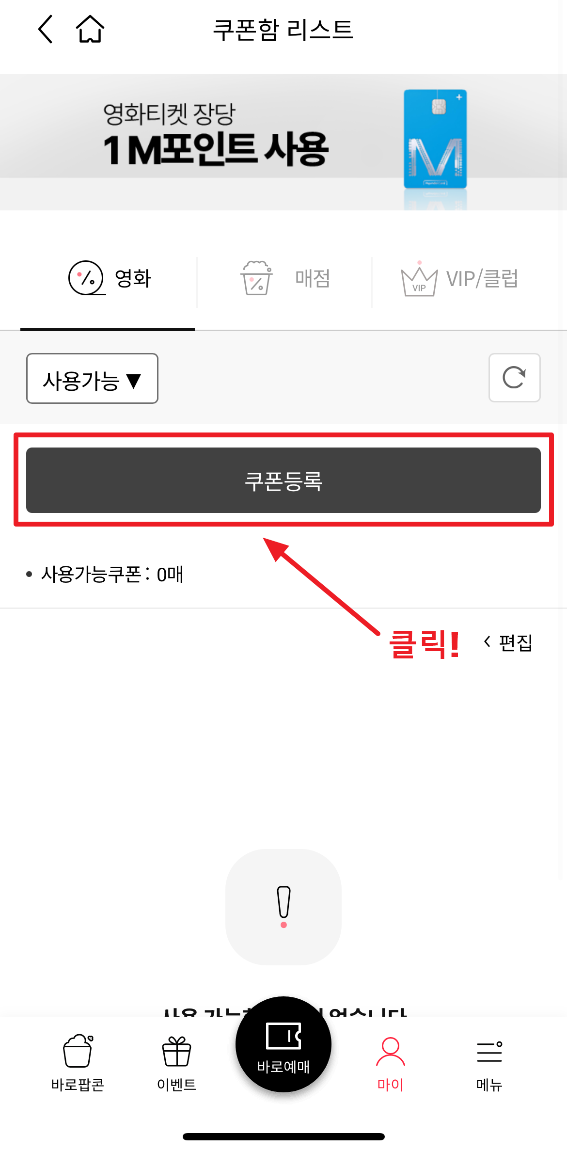 2. 쿠폰함에서 "쿠폰등록" 버튼을 클릭해 주세요.