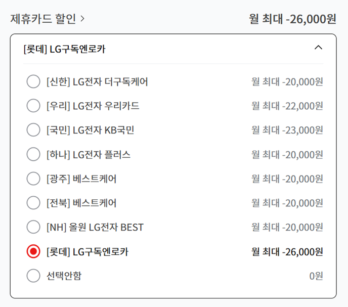 LG전자 가전 구독 할인 카드 한눈에 보기