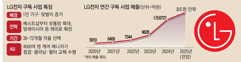 이렇게 초기 비용 부담은 줄이고, 복잡한 제품 관리는 LG전자 전문가에게 맡길 수 있어 LG전자의 가전을 구독하는 사람들이 점차 늘어나고 있는 추세랍니다.