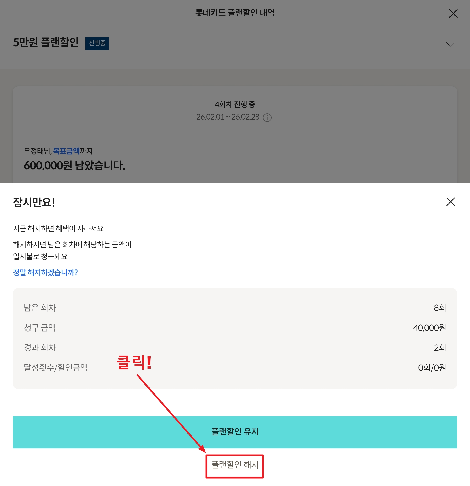 롯데카드 앱(로카)에서 롯데카드 플랜할인 프로모션 해지하기