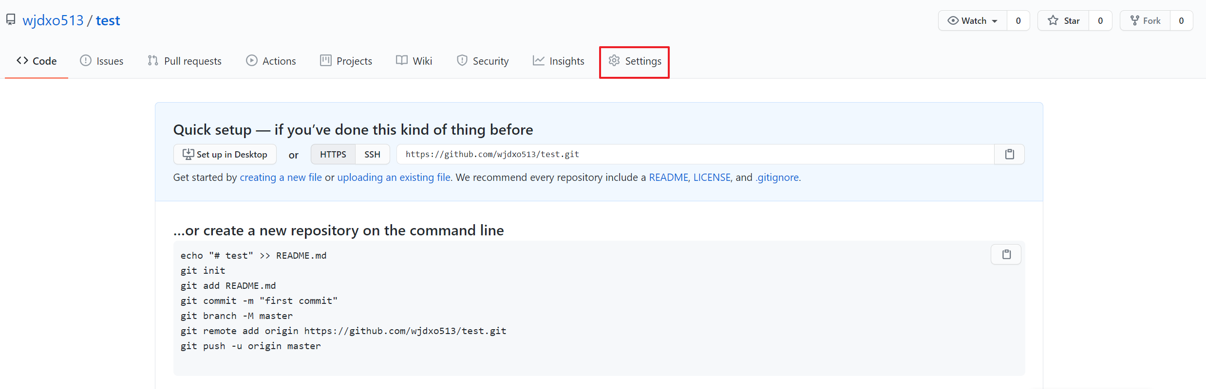 3. 삭제할 레파지토리에서 우측 상단의 Setting버튼을 클릭합니다.