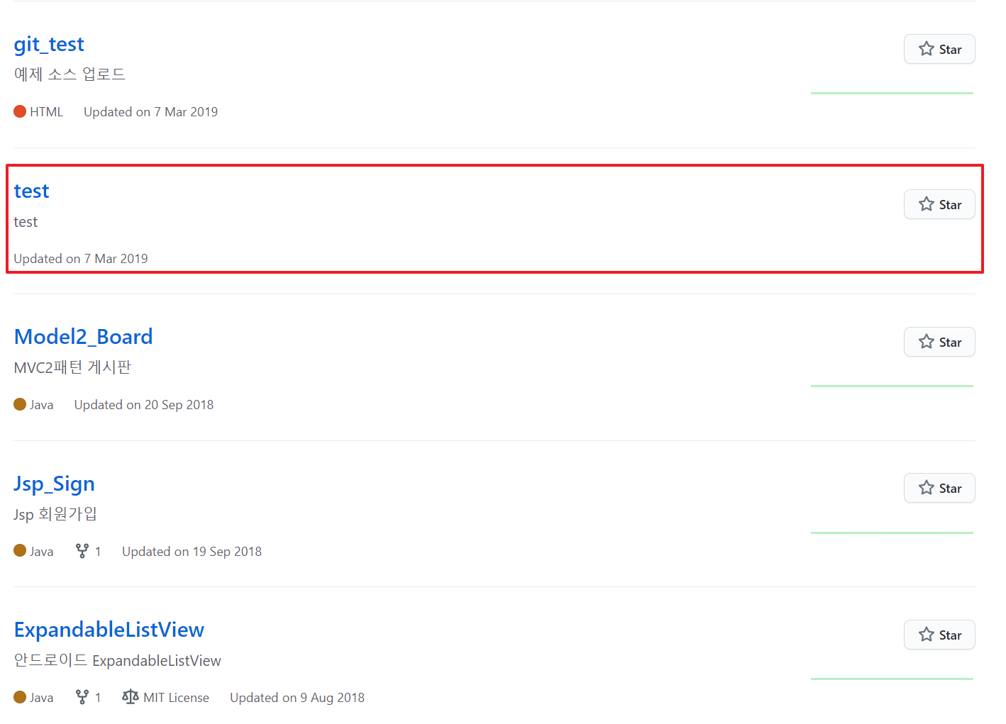 2. 자신의 레파지토리 리스트 중에서 자신이 삭제하고자 하는 레파지토리에 들어갑니다.