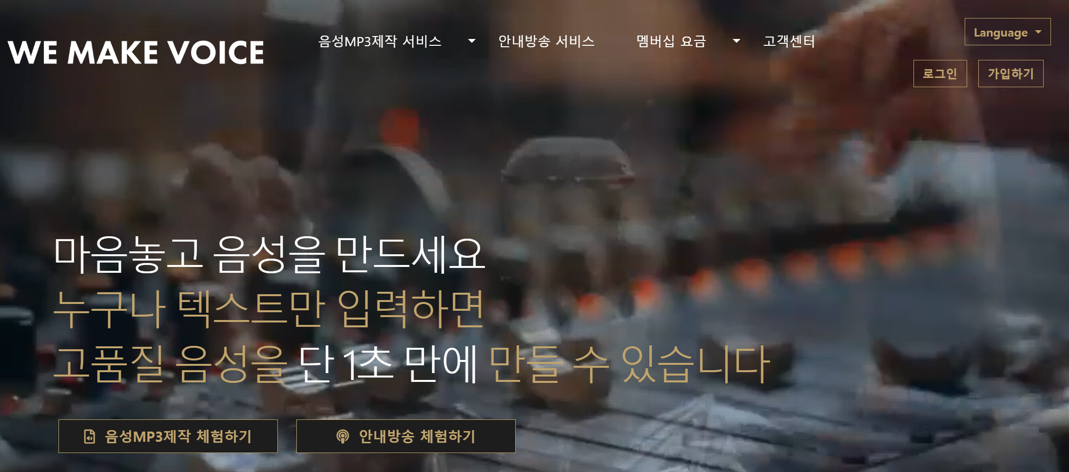 위메이크보이스는 다양한 언어의 지원과 많은 사람들의 목소리를 보유하고 있습니다. 유료버전도 있기는 한데 무료버전으로도 충분한 퀄리티의 음성파일을 만들어 낼 수 있기 때문에 따로 결제는 필요하지 않을 것 같습니다. 다만 로그인을 해야 MP3 파일을 다운받을 수 있다는 점이 이 사이트의 단점이라고 생각됩니다.