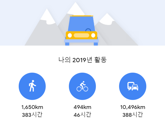 구글에게서 흥미로운 한통의 메일을 메일을 받았습니다. 구글에서 제공하는 Google Maps Timeline이라는 서비스를 기반으로 수집된 저의 2019년 데이터를 정리해서 보내주더군요. Google Maps Timeline이라는 서비스는 핸드폰에 로그인된 구글 계정에 GPS접근이 허용되어 있으면 받을 수 있는 서비스인 듯합니다. 구글에서 받은 메일에는 핸드폰에 로그인된 제 구글 계정에 위치 기록 사용을 허용해두었기에 보내드리는 이메일이라고 명시되어 있었습니다.