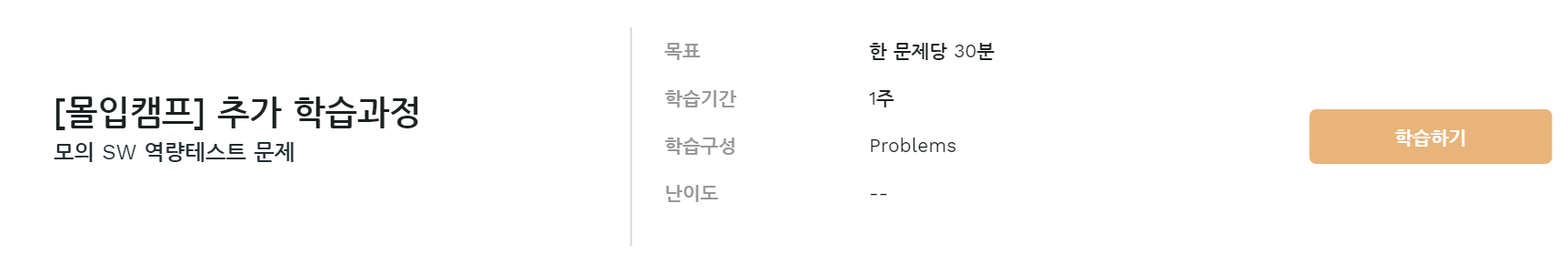 추가 학습과정이라는 새로운 과정이 개설되었다. 일단 내 계획은 지금까지 못 풀었던 문제들을 전부 다 Clear하고 추가 학습과정으로 넘어가는 것을 목표로 하고 있다.