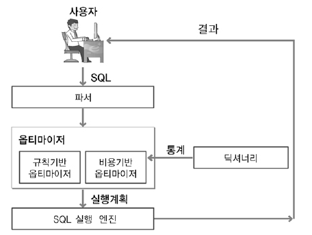 옵티마이저는 가장 효율적인 방법으로 SQL을 수행할 최적의 처리 경로를 생성해주는 DBMS의 핵심 엔진입니다. 컴퓨터의 두뇌가 CPU인 것처럼 DBMS의 두뇌는 옵티마이저라고 할 수 있습니다. 개발자가 SQL을 작성하고 실행하면 소프트웨어 실행파일처럼 즉시 실행되는 것이 아니라 옵티마이저(Optimizer)라는 곳에서 "이 쿼리문을 어떻게 실행시키겠다!"라는 여러 가지 실행계획을 세우게 됩니다. 이렇게 실행계획을 세운 뒤 시스템 통계정보를 활용하여 각 실행계획의 예상 비용을 산정한 후 각 실행계획을 비교해서 최고의 효율을 가지고 있는 실행계획을 판별한 후 그 실행계획에 따라 쿼리를 수행하게 되는 것입니다.