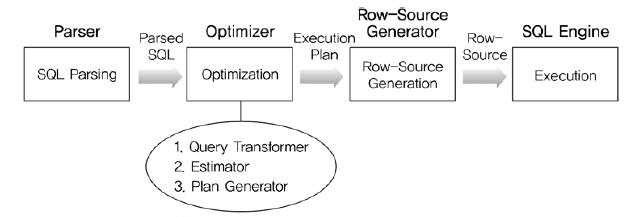 - Estimator : 시스템 통계정보를 딕셔너리로부터 수집하여 SQL을 실행할 때 소요되는 총비용을 계산합니다.
