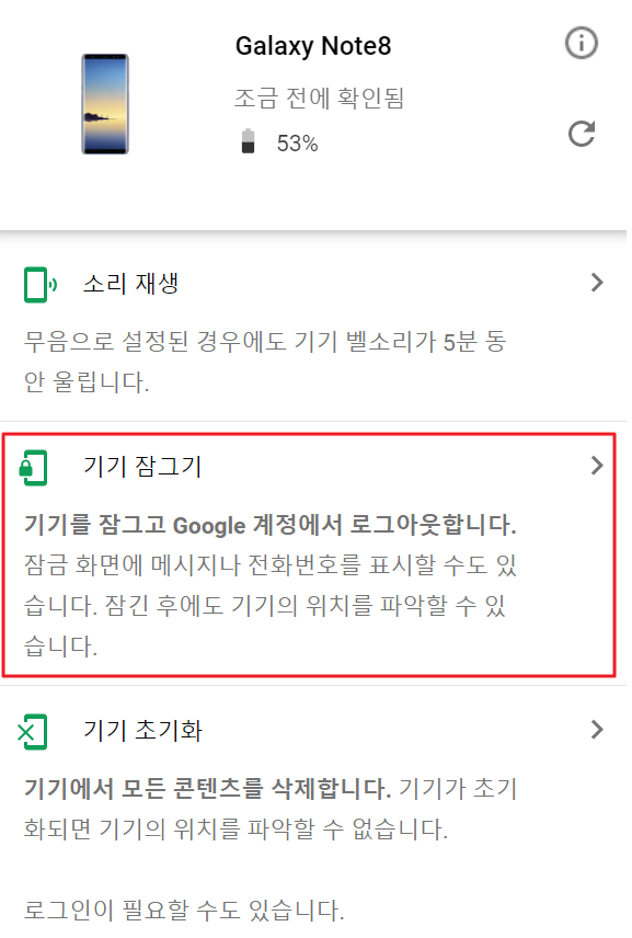 8. 스스로 잃어버린 핸드폰을 찾는 것이 힘들다면 다음으로 기댈 수 있는 방법은 누군가 내 핸드폰을 습득하여 나에게 연락을 주는 것이 가장 확률적으로 높을 것입니다. 기기 잠그기라는 기능을 활용하여 다른 사람이 내 휴대전화를 돌려주는데 도움이 되도록 잠금 화면에 메시지나 전화번호를 추가할 수도 있습니다. 또한 만약 핸드폰에 잠금 설정을 해두지 않았다면 기기 잠그기라는 기능으로 PIN, 패턴 또는 비밀번호로 휴대전화를 잠궈서 습득자가 핸드폰을 사용하지 못하게 할 수 있습니다.