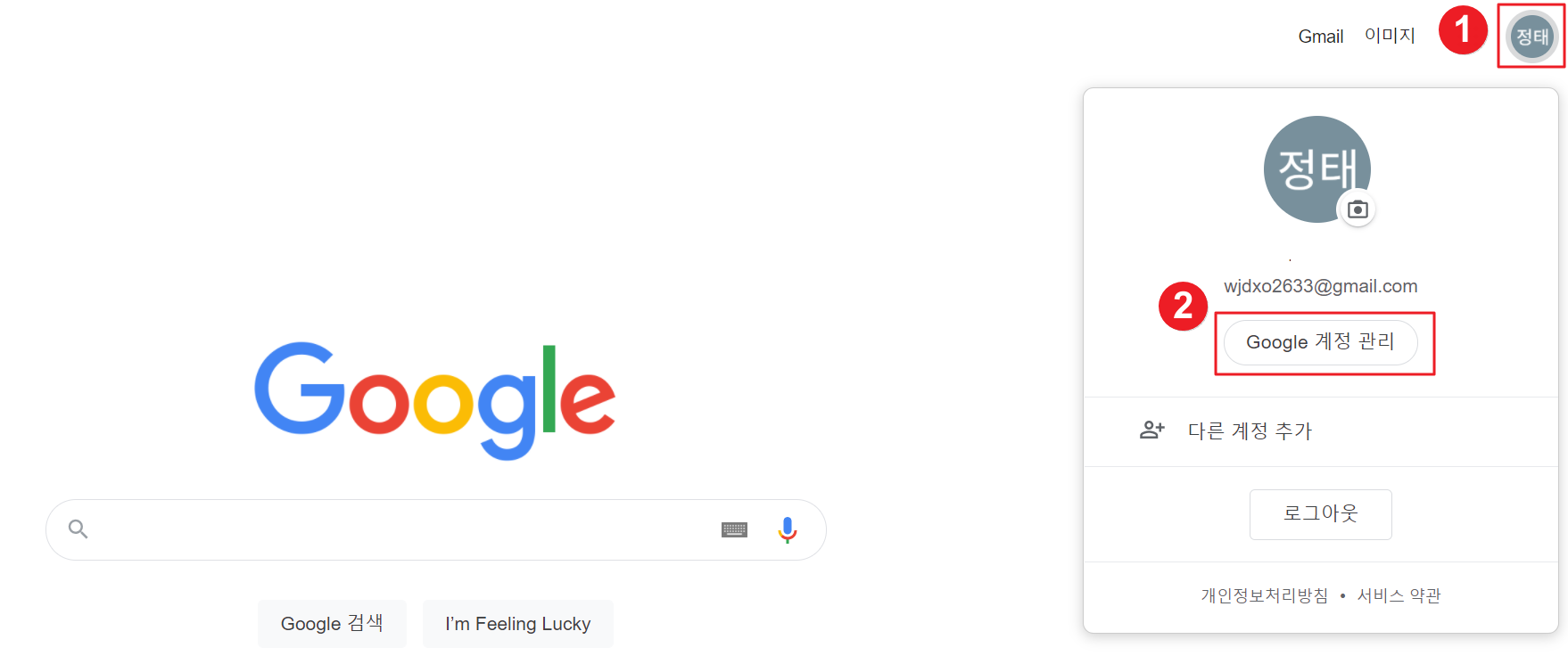 1. 구글에 들어가셔서 로그인한 후 Google 계정 관리로 들어갑니다.