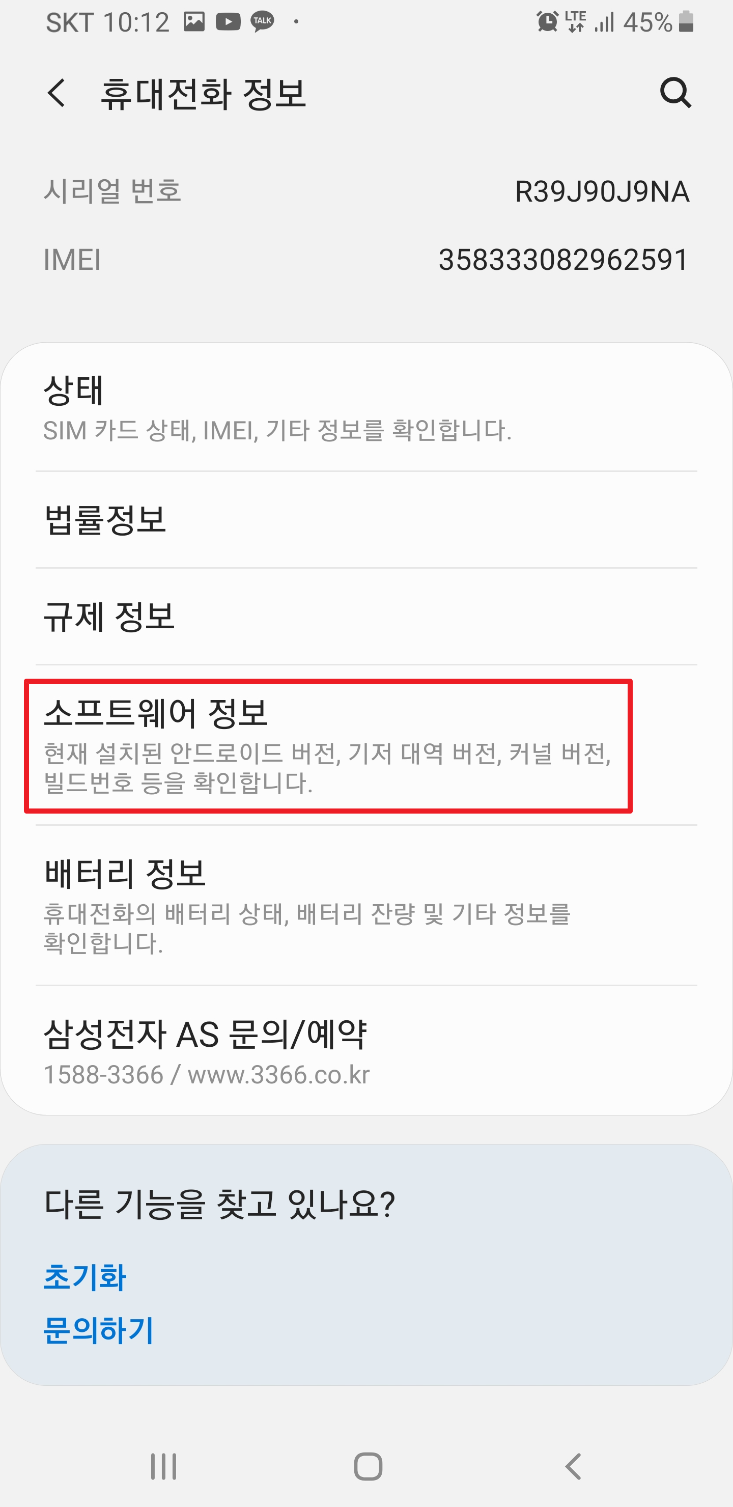 3. 휴대전화 정보에서 소프트웨어 정보를 눌러 이동합니다.