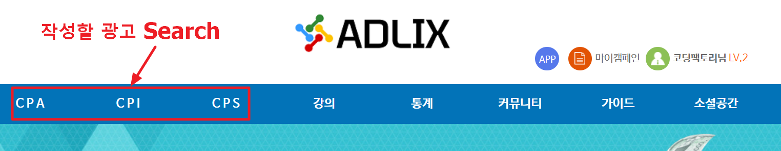 2. CPA, CPI, CPS 탭에 들어가셔서 자신이 하고 싶은 광고를 클릭합니다.
