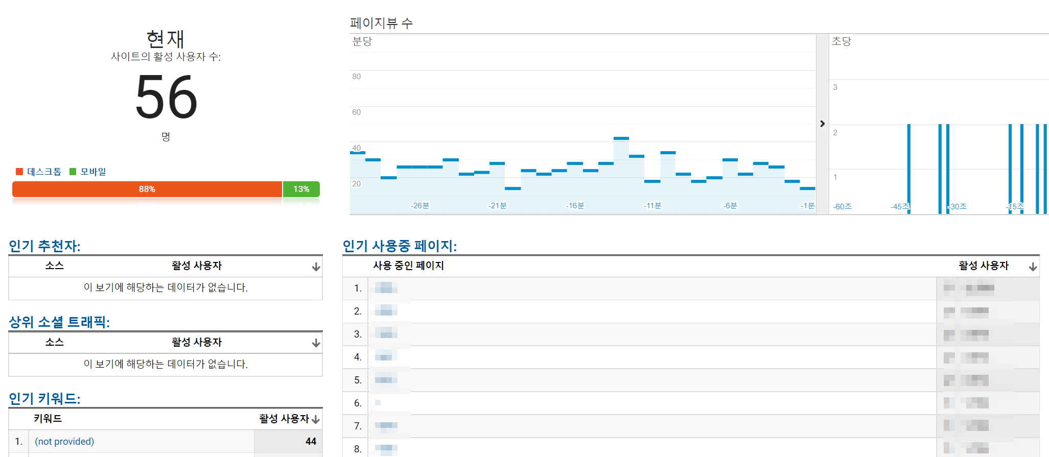 - 실시간 : 현재 웹사이트를 이용하고 있는 사용자들의 활동에 대한 정보를 보여줍니다.