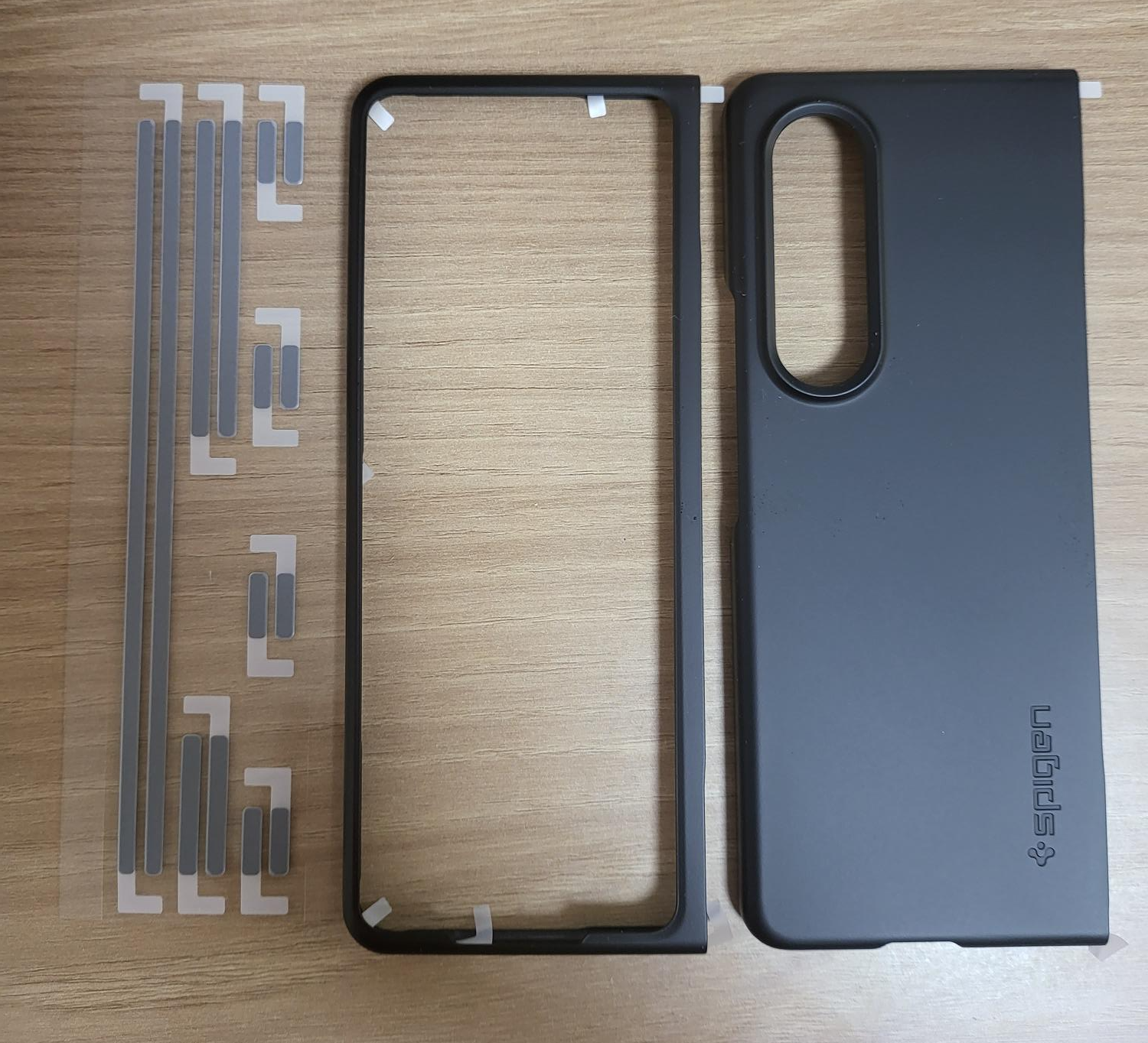 구성품은 전면 케이스, 후면 케이스, 여분의 양면테이프 이렇게 구성되어 있습니다.