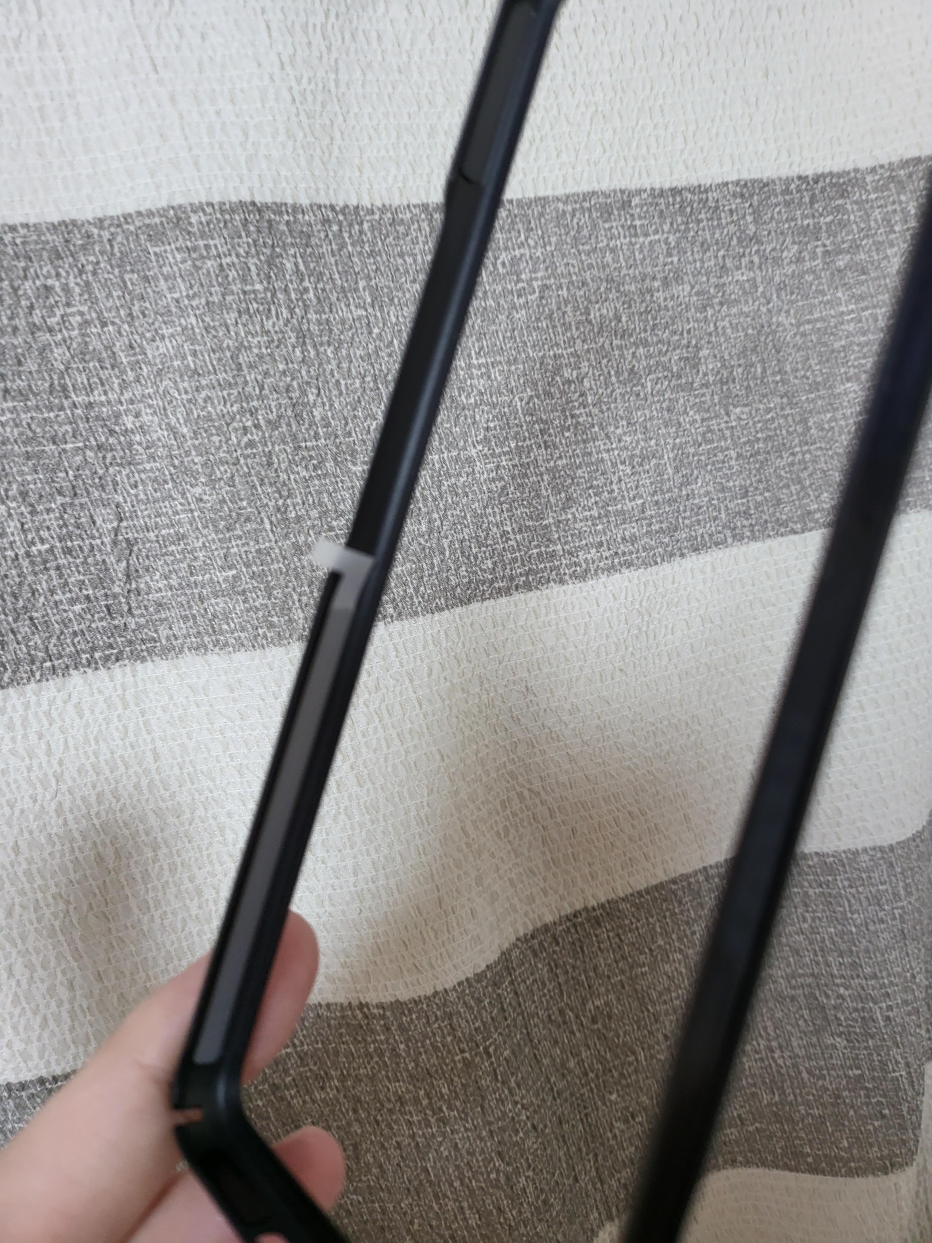 착용한 모습은 위와 같습니다. 슬림핏에 얇은 케이스인만큼 그립감도 상당히 좋고 디자인도 이만하면 깔끔하고 괜찮은 것 같습니다. 참고로 힌지 부분은 보호가 안되니 참고 부탁드립니다.