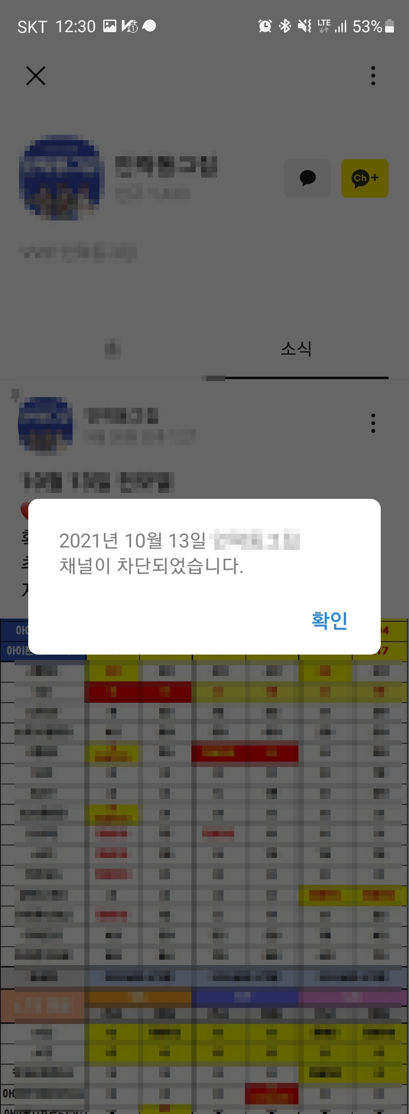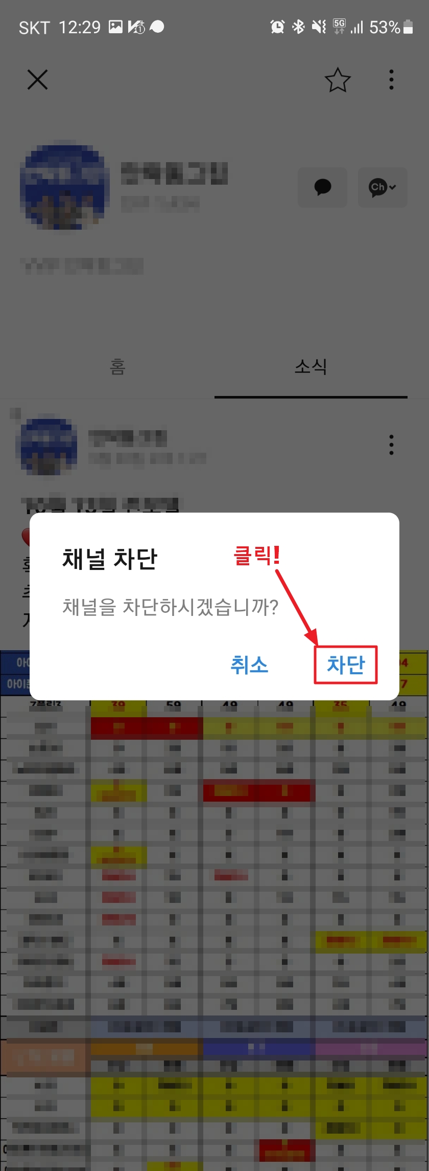 3. 플러스 채널 버튼을 클릭하면 위와 같이 채널 차단 알림창이 뜹니다. 여기서 채널 차단을 클릭합니다.
