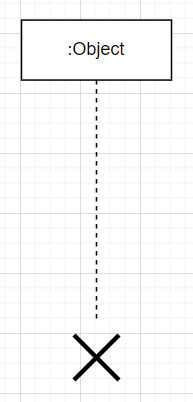 생명선(Lifeline)은 액터나 객체(Object)가 얼마나 오래 존재하는지 나타내는 선입니다. 액터나 객체가 위에 존재하고 그 아래로 점선으로 존재합니다. 점선이 이어져있는 곳 까지가 메모리에 살아있다는 뜻이고 메모리에서 객체가 소멸되면 생명선 아래에 X표로 객체 소멸 표시를 해줍니다.