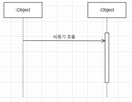 비동기 호출은 빈 화살표에 실선으로 표기하며 요청을 보낸 뒤 응답을 기다리지 않습니다.