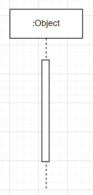 실행상자는 액터나 객체와 같은 인스턴스가 다른 인스턴스와 상호작용을 할 때 작성하며 작성법은 라이프라인의 중앙에 위와 같이 직사각형의 막대로 표기합니다.