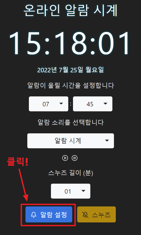 4. 알람 설정 버튼을 클릭합니다.