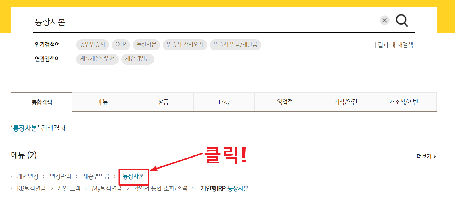 3. 검색창에서 통장사본을 검색하고 결과로 검색 된 텍스트를 클릭합니다.