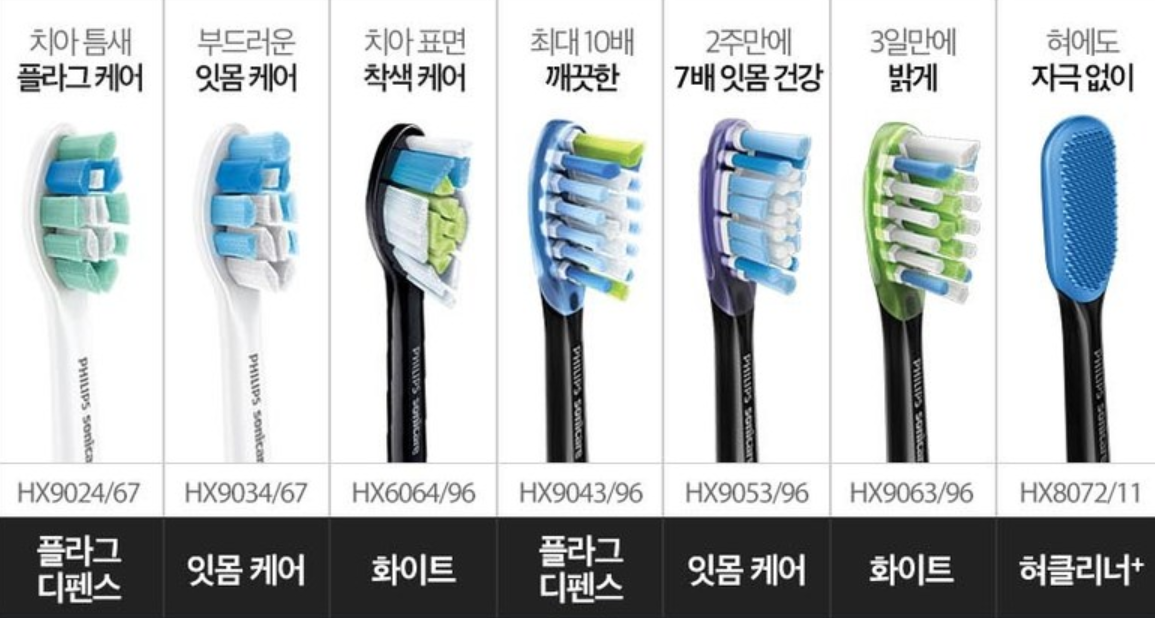 추가로 필립스 소닉케어 다이아몬드클린 9000의 칫솔모는 위와 같으며 필요하다면 추가로 구매를 하셔야 합니다.