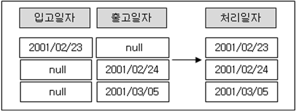 → 제품의 입고일자와 출고일자는 서로 상충되는 의미를 가지는 속성입니다. 고로 처리일자라는 속성으로 하나로 통합하여 관리해야 합니다.
