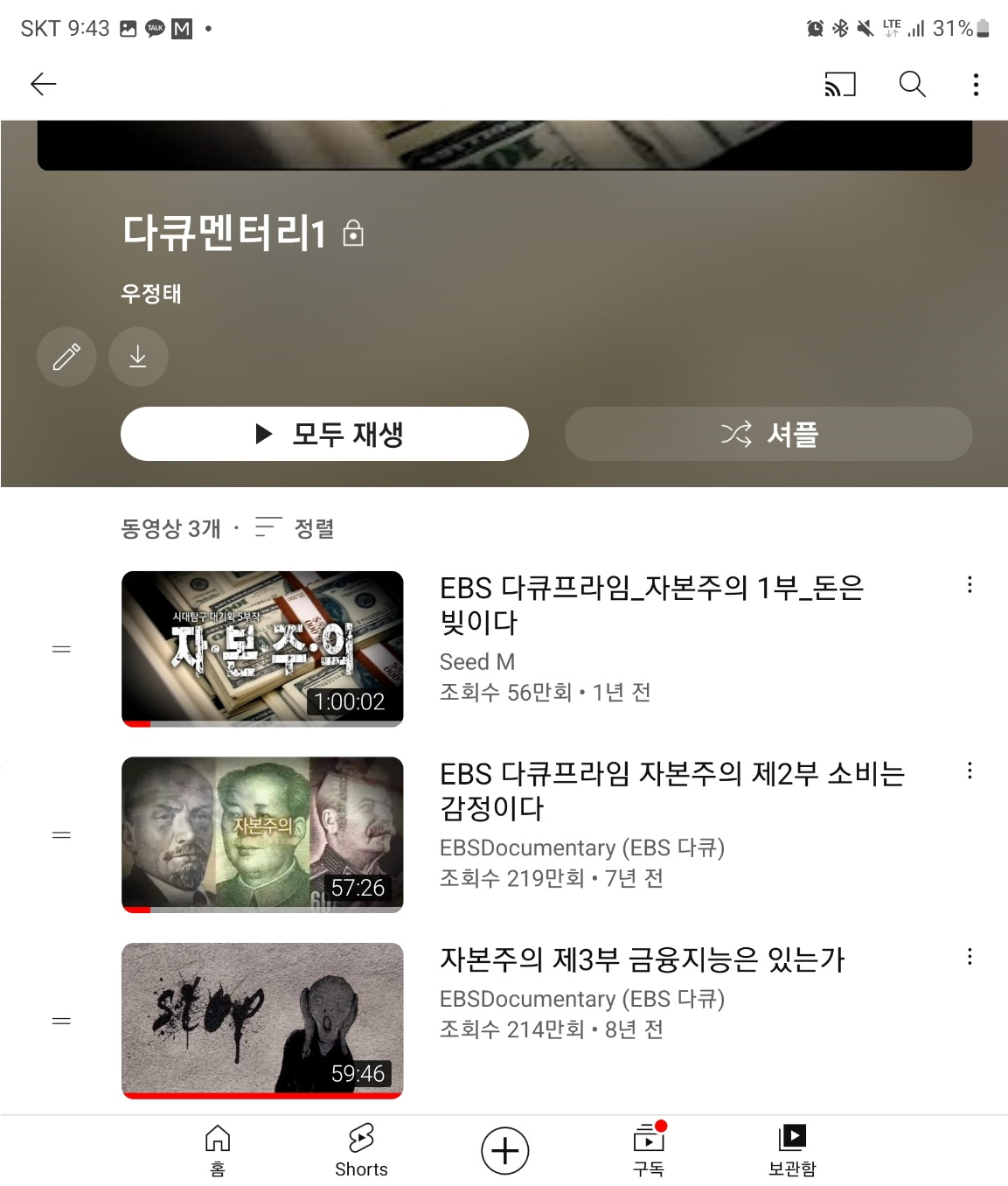 유튜브에는 자주 보고 싶은 영상들을 하나의 리스트로 만들어 끊김없이 이어서 감상할 수 있는 기능들이 있습니다. 이 기능들을 활용하면 자신이 듣고 싶은 음악이나 영상들을 하나의 재생목록으로 만들어서 감상할 수 있는데요. 저는 이 기능을 활용하여 자주듣는 음악 플레이리스트를 만들거나, 여러 편으로 되어있는 다큐멘터리를 하나로 묶어서 생각날 때마다 보고는 합니다. 이번 포스팅에서는 유튜브의 나만의 플레이리스트를 만드는 방법에 대해 알아보도록 하겠습니다.