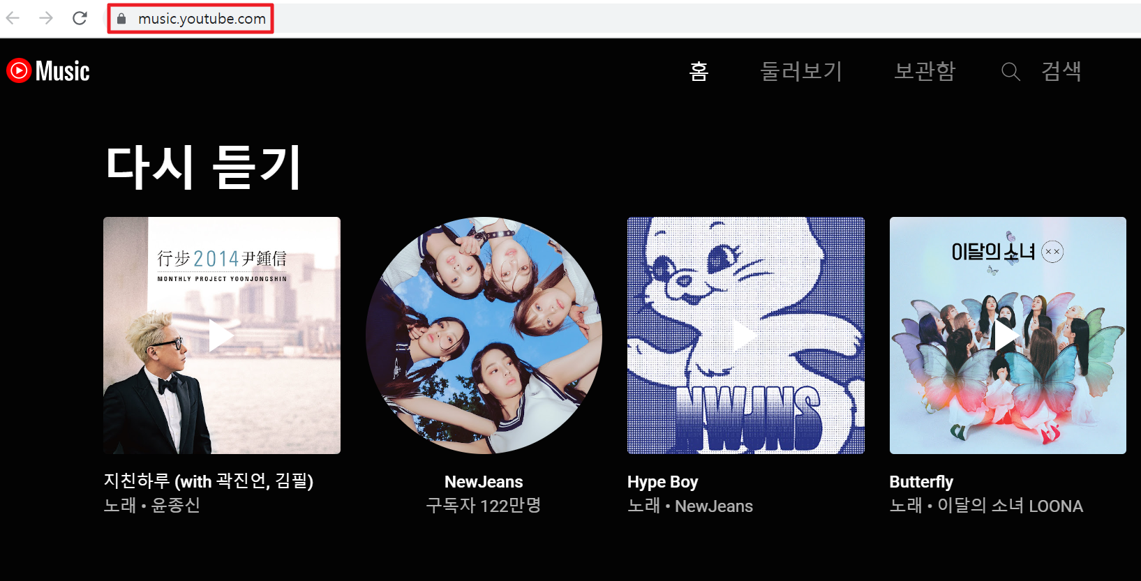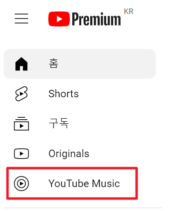 1. 먼저 브라우저(크롬이나 엣지)를 켠 뒤 유튜브 뮤직 사이트로 들어갑니다. 유튜브 홈페이지의 좌측 상단에서 YouTube Music을 누르셔도 되고 아래에 링크된 YouTube Music 주소를 클릭하셔도 됩니다.