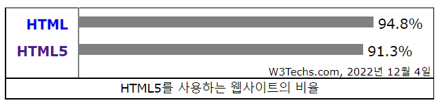 웹 사이트에서의 HTML 점유율