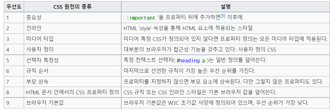 CSS 우선순위 스킴 (높은 순 -> 낮은 순)