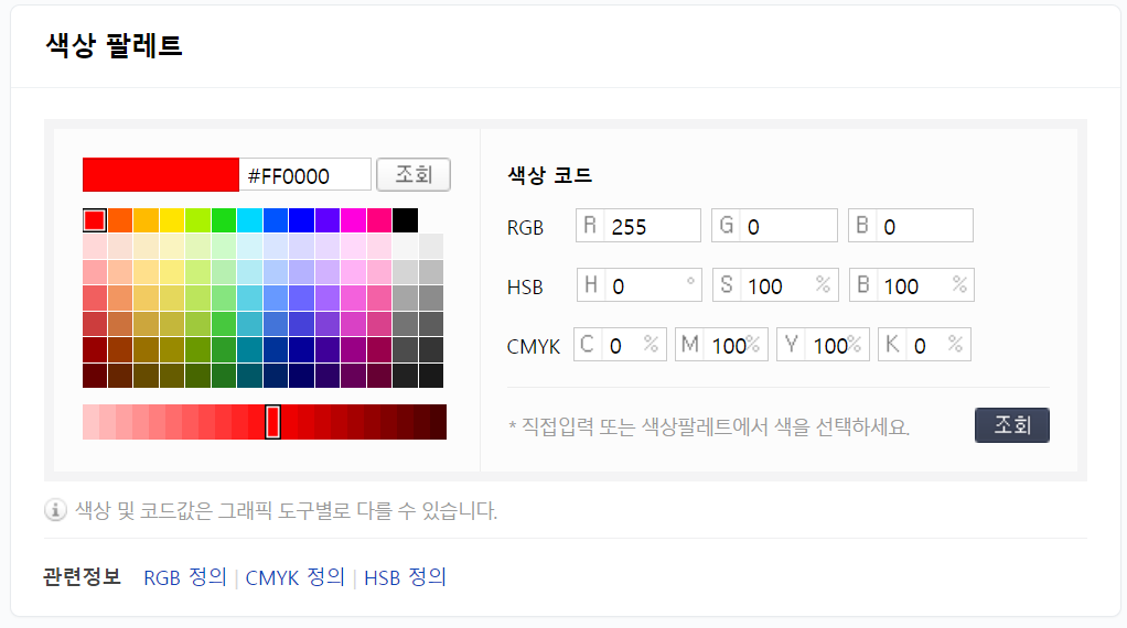 가장 많은 사람들이 사용할 수 있는 네이버 색상 팔레트입니다. 네이버에서 색상 팔레트라고 치면 특정 색상의 HAX코드와 RGB 색상을 확인하실 수 있습니다.